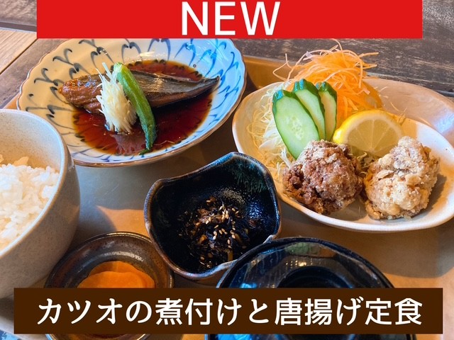 お魚の定食、二品目は「カツオの煮付けと唐揚げの定食」です