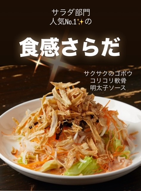 レタスのシャキシャキに細かく刻んだナンコツ入り明太子ソース、サクッと揚がったゴボウのコラボレーション。