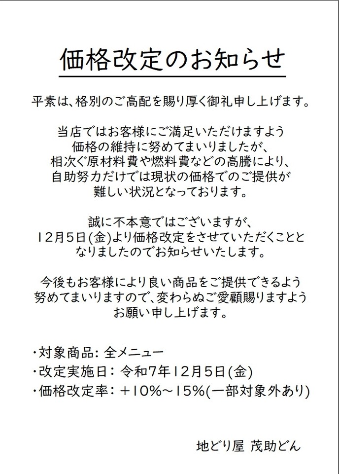 価格改定のお知らせ|長崎名物「噂の親子丼の具」【茂助どん公式通販】